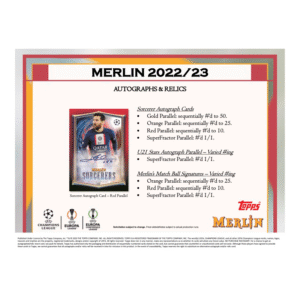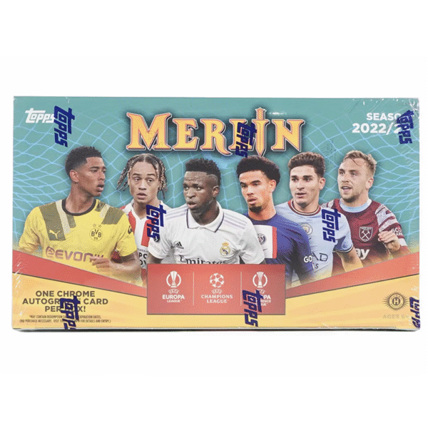 Get ready for an unparalleled soccer collecting experience with the 2022/23 Topps UEFA Club Competitions Merlin Chrome Soccer Hobby Box. Unite with soccer’s finest, including rookies, stars, and legends from different leagues!