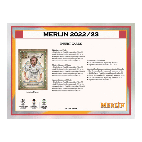- The 2022/23 collection features a 150-card Base Set and exciting insert sets such as U21 Stars, Ageless Alchemy and Merlin’s Masters.