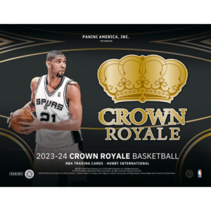 The 2023/24 Panini Crown Royal Basketball International Hobby Box brings a regal touch to basketball card collecting. Known for its unique die-cut designs and luxurious feel, this edition features an impressive lineup of NBA stars, rookies, and legends. Collectors can chase the iconic Crown Autographs, Silhouettes, and the exclusive Kaboom! inserts, which are sure to add immense value and excitement to any collection.
