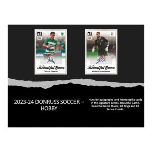 Kick your collection into high gear with the 2023/24 Panini Donruss Soccer Hobby Case! Averaging 12 autos and 12 memorabilia cards, this case is a soccer lover’s dream come true. Don’t miss out on this epic case – grab yours now and take your collection to the next level!