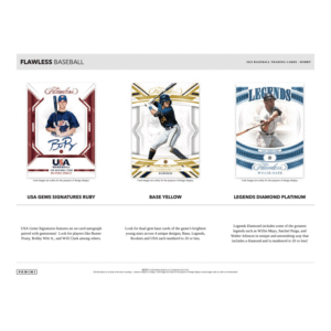 – Flawless showcases gorgeous autographs of Hall of Fame legends and Future Stars that range from Ichiro to Bobby Witt Jr. to Elly De La Cruz, in many different sets, including Legendary Scripts, Rookie Patch Autographs, and Star Swatch Signatures.