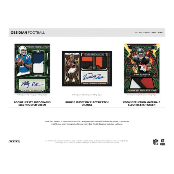 – 2023 Obsidian Football delivers the NFL’s best and brightest with a bevy of colorful parallels across the base and insert sets.