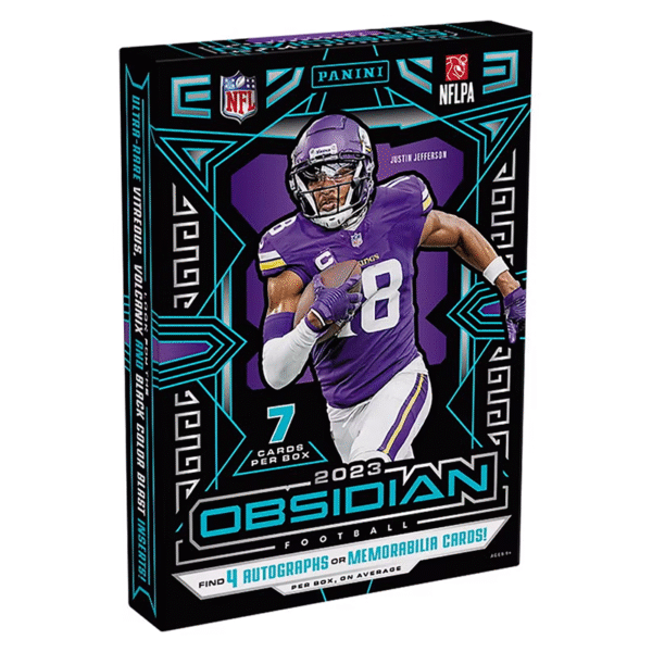 Experience football greatness with the 2023 Panini Obsidian Football Hobby Case! Averaging 24 autographs and 24 memorabilia cards, this case is bursting with football FIRE. With its sleek design and exclusive inserts, Obsidian delivers the electrifying thrill of the NFL straight to your collection.