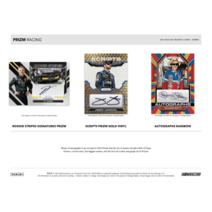 – Plenty of autographs to go around in 2023 Prizm and the list of names includes Hall of Fame drivers, current stars, the biggest names, and the first all rookie autograph set in Prizm!