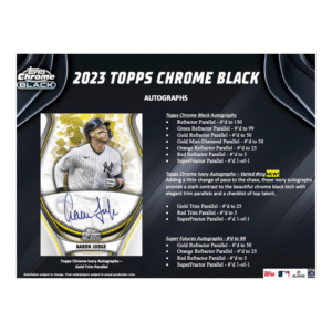 2023 Topps Chrome Black Baseball provides another premium breaking experience with another year of sharp Chrome Black tech on beautiful designs!