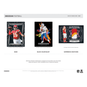 – 2024 Panini Obsidian Football delivers autograph and memorabilia cards of the hottest rookies and veterans in 2024, including the return of Supernova Swatches.