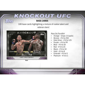 The 2024 Topps UFC Knockout Hobby Case delivers a powerful punch for MMA collectors, offering premium cards featuring the biggest names in the UFC. With bold designs and on-card autographs, collectors can chase rare hits like dual autographs, relic cards, and limited-edition parallels. The Knockout series is known for capturing the intensity and excitement of UFC action, making it a must-have for fans looking to add top-tier UFC content to their collection.
