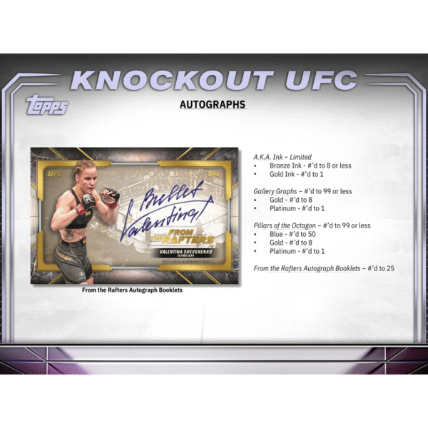 - Look for on-card Autographs, Relic Autographs, Jumbo Relics and Booklets from your favorite UFC stars.